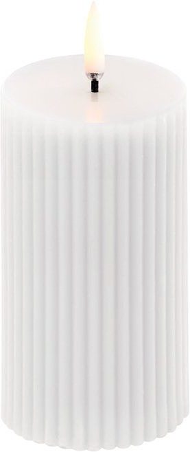 LED Kerze mit Batterie, 2 Größen in Weiß Geriffelt
