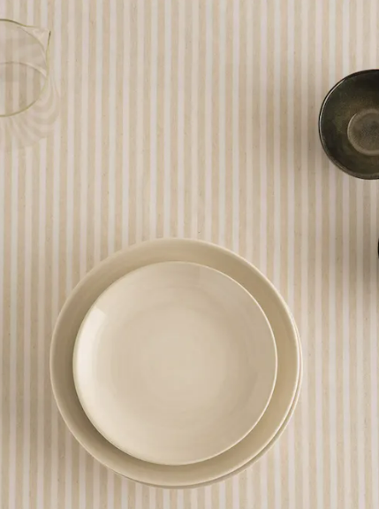 Gestreifte Tischdecke, schmutzabweisend, weiß/beige 140 x 250