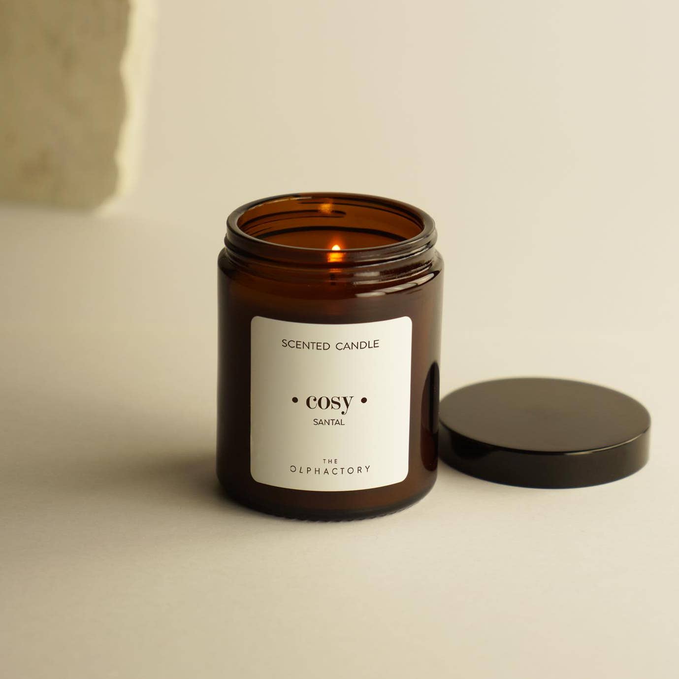 Duftkerze "Cosy" hat einen angenehmen Duft von Sandelholz mit einer Brenndauer von circa 40 Stunden.